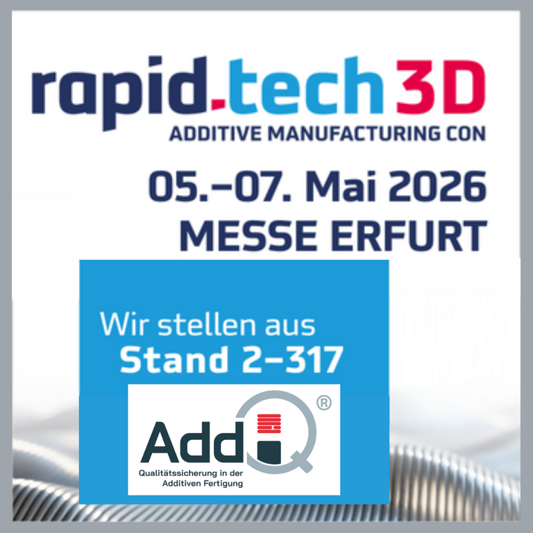 Das Forschungsprojekt AddiQ präsentiert sich vom 05.–07. Mai 2026 auf der rapid.tech 3D in Erfurt als innovativer Impulsgeber für die Qualitätssicherung in der additiven Fertigung. Gemeinsam mit seinen Projektpartnern zeigt das Konsortium am Stand 2-317 aktuelle Entwicklungen und praxisnahe Lösungen für industrielle Anwendungen.